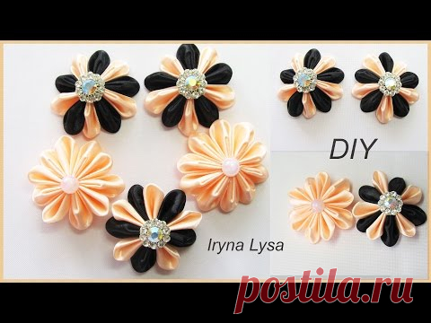 Квіти зі стрічки 5 см/ Цветы из атласной ленты 5см. Канзаши/ Ribbon flowers/tutorial kanzashi