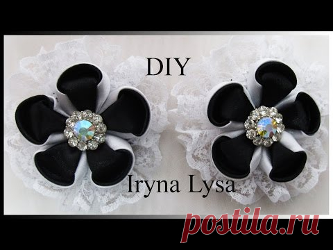 Канзаші до школи/Заколка канзаши в школу с цветком/Ribbon flower tutorial/DIY Kanzashi
