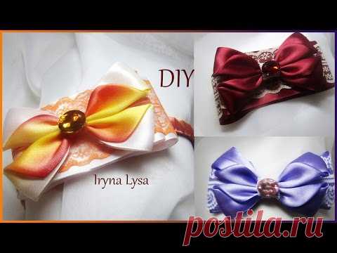 Бантик канзаши на ободке/Красим атласную ленту/Bows kanzashi tutorial