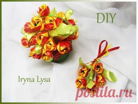 ♡Тюльпани канзаші/Тюльпаны канзаши из лент 2.5 см/ Kanzashi Tulip Flower/tutorial