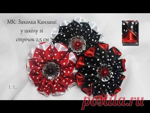 ♡МК: Заколка Канзаші у школу із атласних стрічок 2,5 см/Цветок канзаши в школу/DIY Kanzashi school