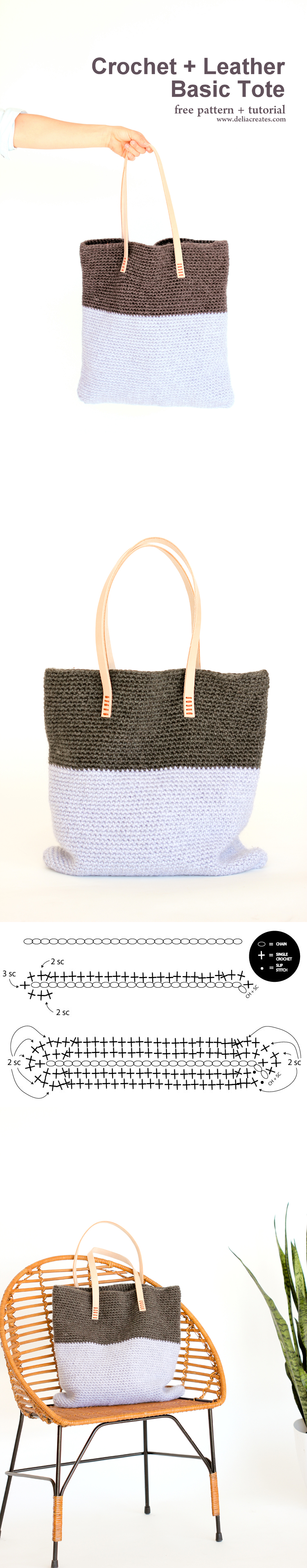 Вязание + кожа базовый Сумка - Бесплатная выкройка - Делия создает