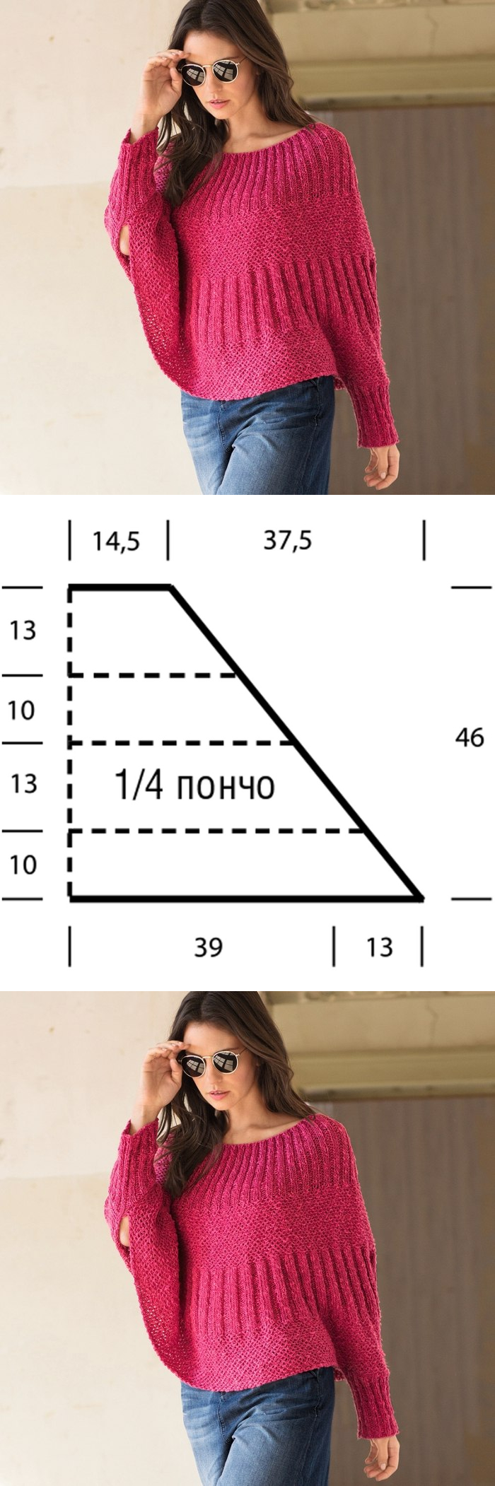 КРАСНЫЙ ДЖЕМПЕР-ПОНЧО джемпер спицами вязание кофтп понко вязание спицами