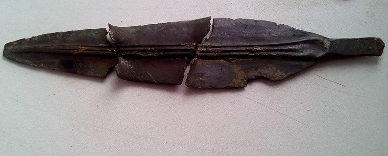 Сегодня я таки нашел недостающую, среднюю часть... Вот такой ножичек получился.... Все части лежали на расстоянии около 20-30 метров друг от друга, по диагонали поля.... Поиздевался трактор над такой вещью(((