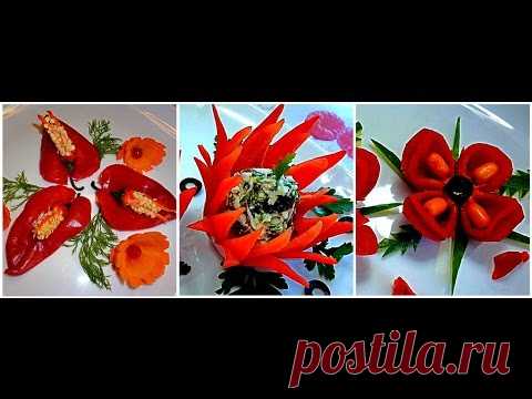 3 СПОСОБА КАК КРАСИВО НАРЕЗАТЬ ПЕРЕЦ! УКРАШЕНИЯ ИЗ ОВОЩЕЙ! КАК КРАСИВО ОФОРМИТЬ СТОЛ!