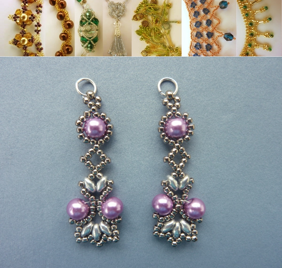 FREE beading pattern for Lotus Lace Earrings - BeadDiagrams.com