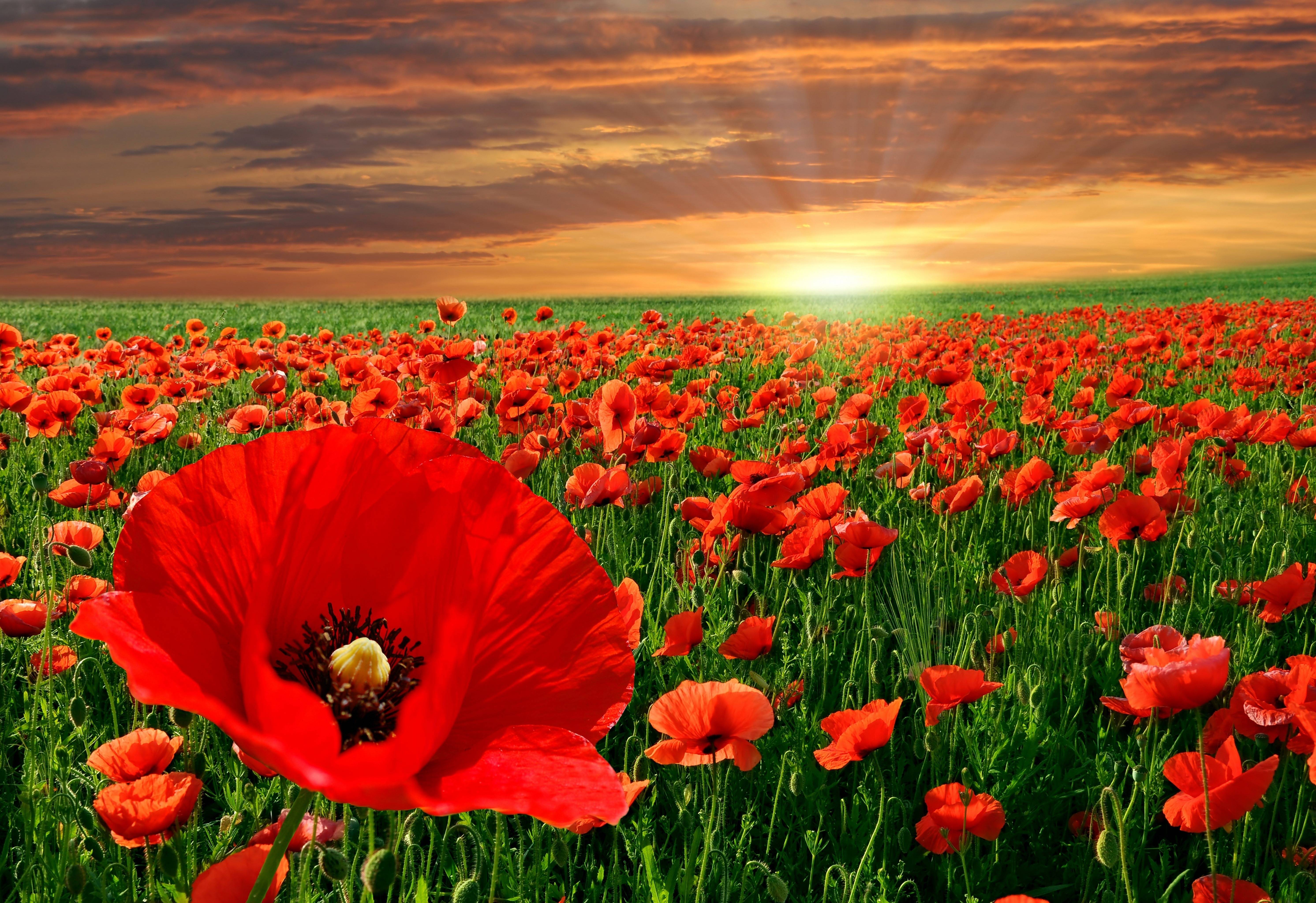 Красный, Небо, пейзаж, закат, природы, маки, цветы скачать картинки