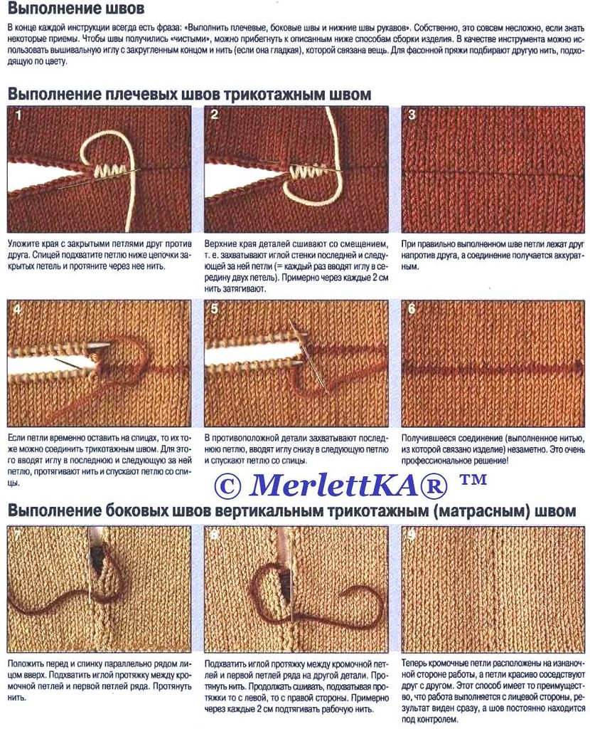 Плечевой трикотажный шов и вшивание рукава... основы вязания на спицах.