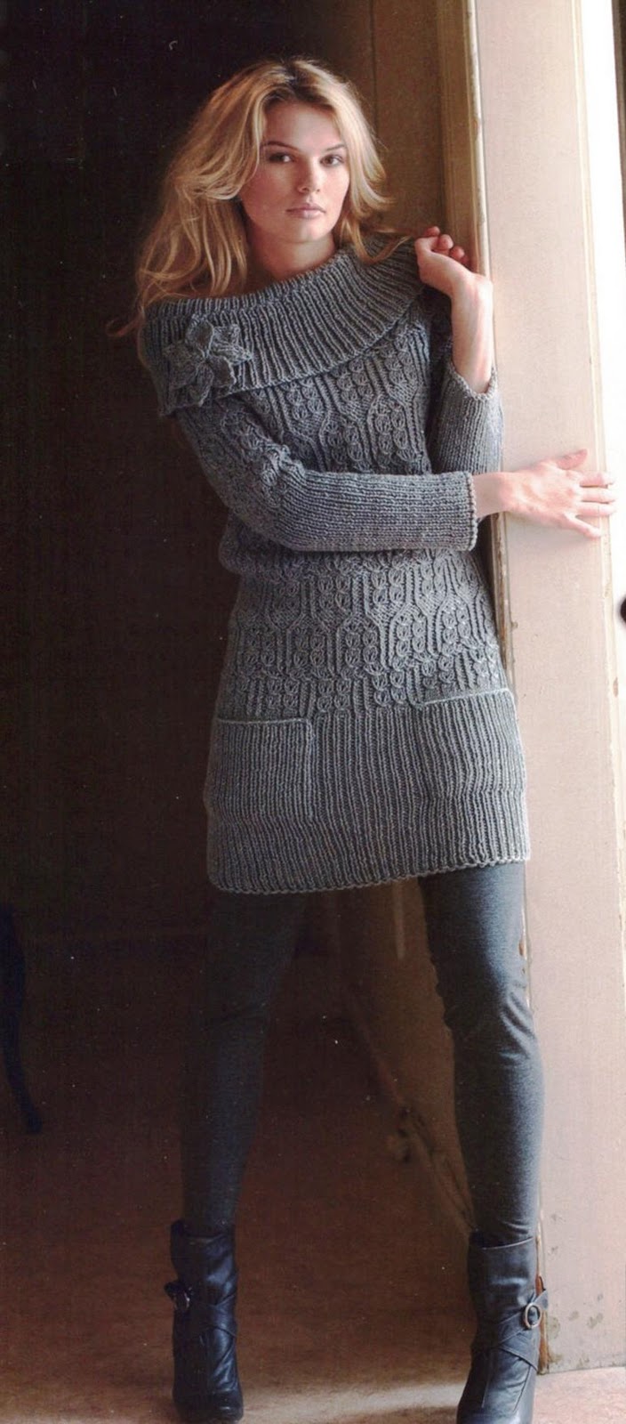Серое платье-свитер.