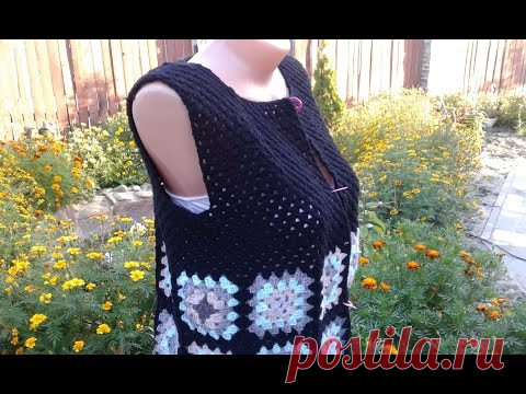 Кардиган из квадратных мотивов. Часть 3. Вывязывание спинки и полочек. Knitting women's cardigan.