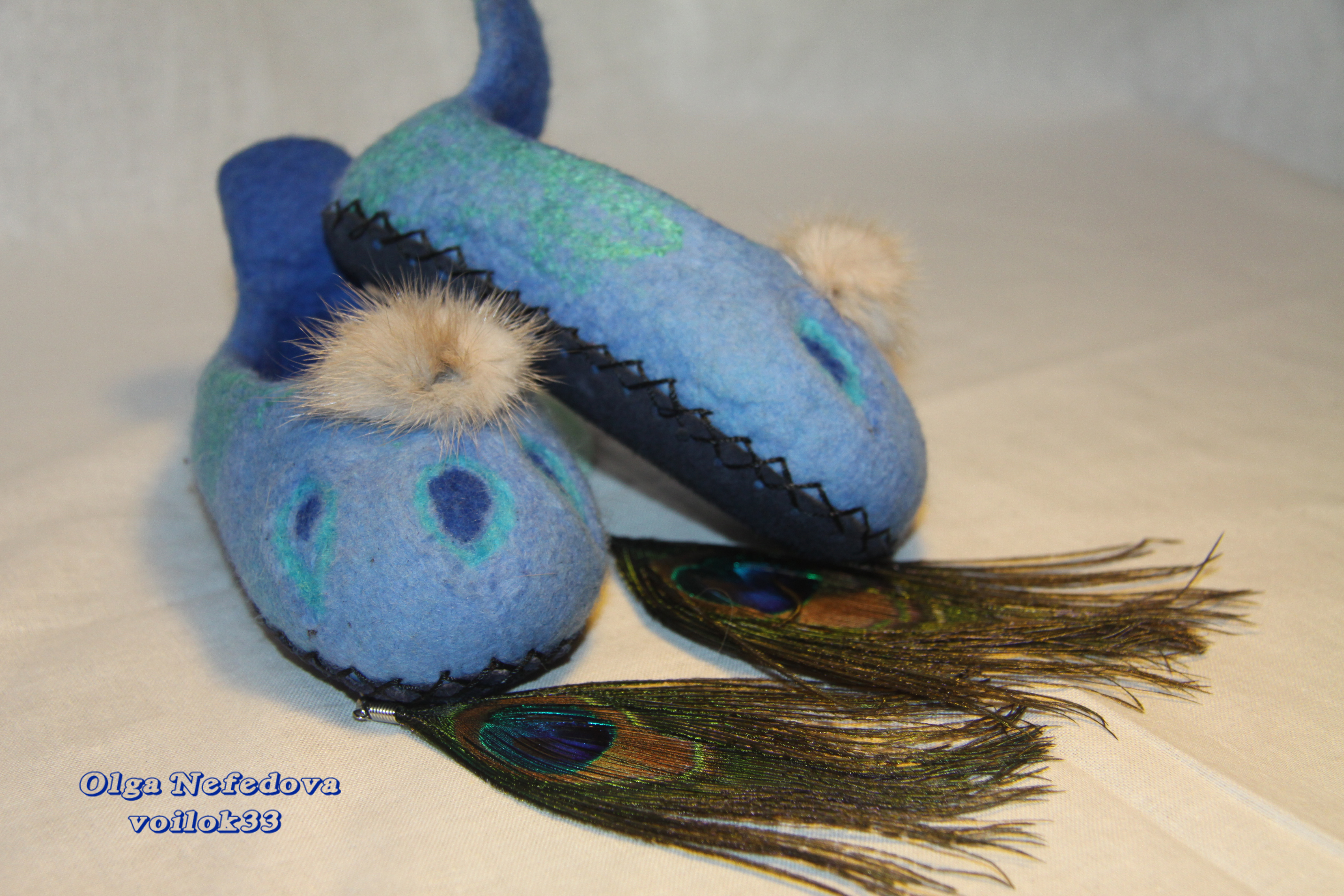 Детские тапочки из войлока "Павлин" (авторский войлок от Ольги Нефедовой www.voilok33.ru).