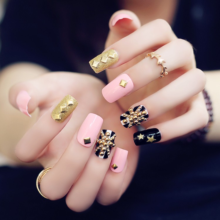 24 шт./компл. мода розовый база флаг Блеск золота металлические заклепки Nail Art Ложные Советы Ногтей Наклейки С Клеем купить в магазине SHINGO Nail Art на AliExpress