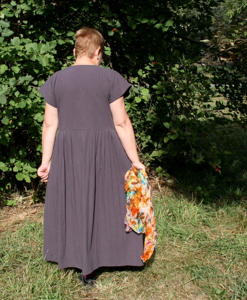 Платье "Осень, мокрый асфальт" из жатого хлопка. Спинка платья.