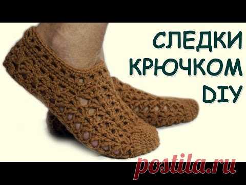 Вязание для начинающих. Ажурные следки/тапочки крючком /// crochet slippers