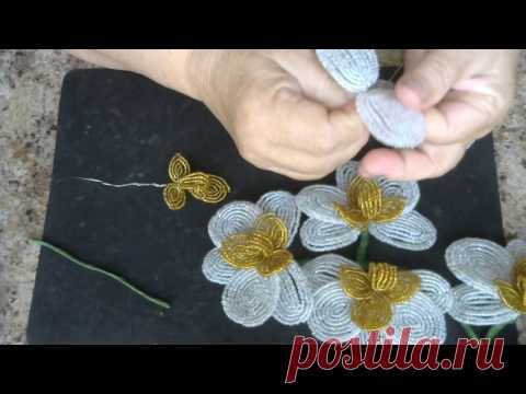 Золотисто - белая орхидея. Мастер - класс. Бисероплетение.