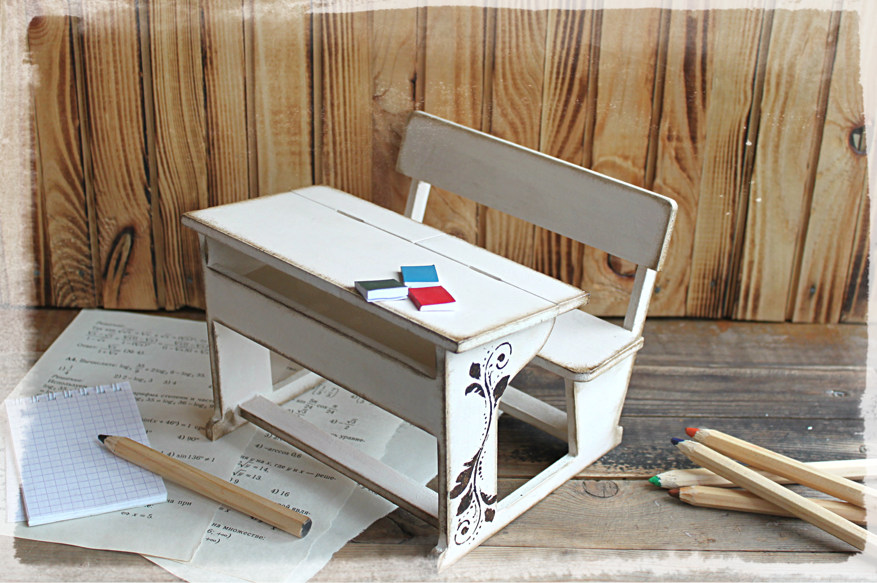 Маленькая парта - прекрасный подарок любимому учителю!!! 📖 Интересная игрушка, декор для фото сессий или интересный элемент оформления кукольного интерьера. Размеры: 17х17х12(в) см