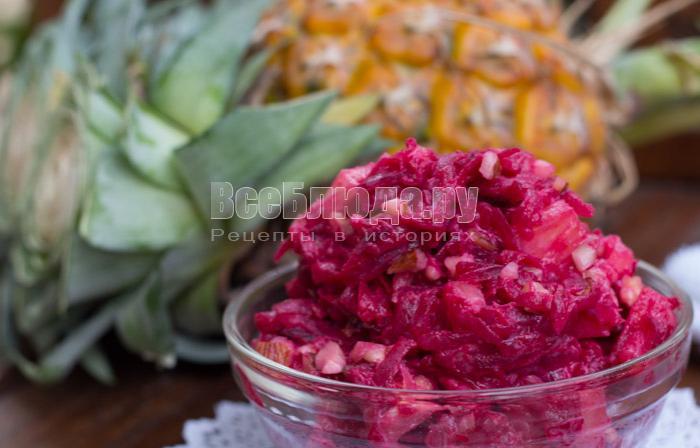 Салат со свеклой, ананасом, орехами - рецепт с пошаговыми фото | Все Блюда