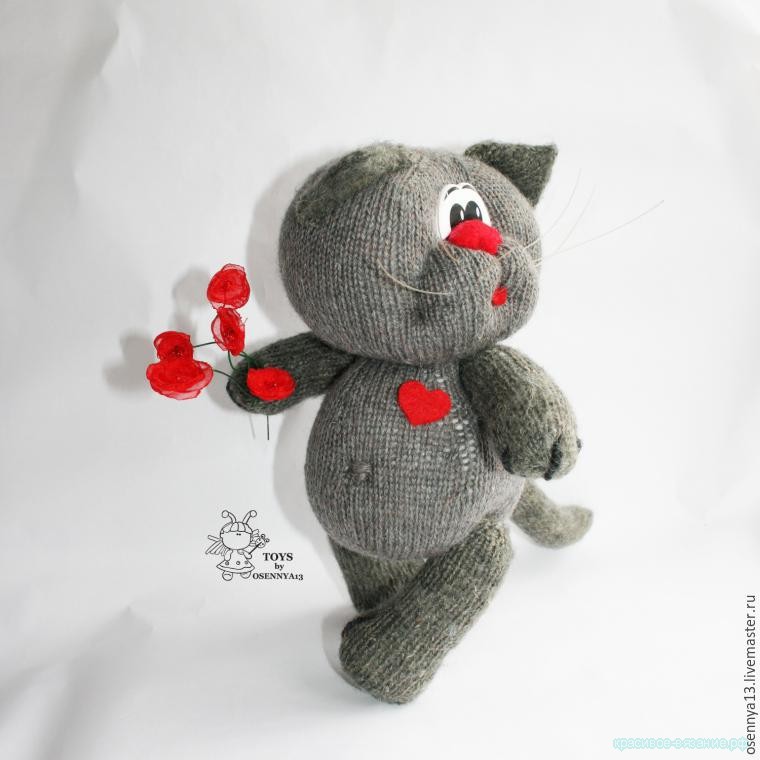 Красивое вязание | Вяжем игрушку спицами «Влюбленный кот»