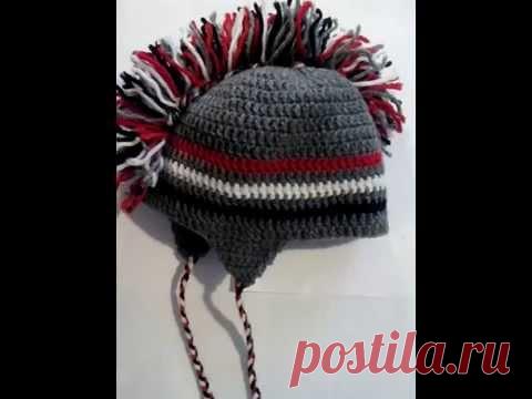 Стильная шапка Ирокез вязаная крючком. - YouTube