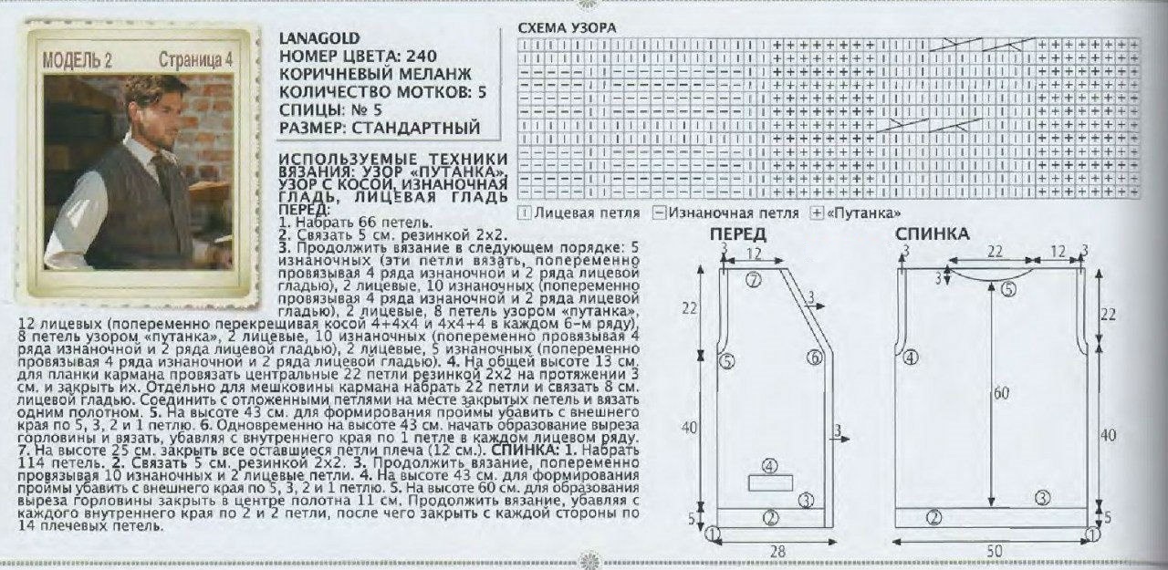 схема вязания спицами мужского жилета