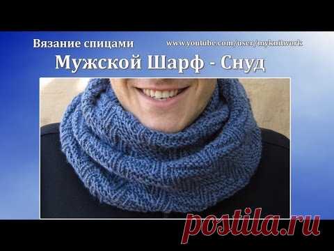 Как связать мужской шарф-снуд спицами. Видео мастер-класс