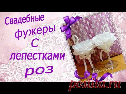 Свадебные бокалы с лепестками роз. Фужеры для молодоженов.Видео-урок.