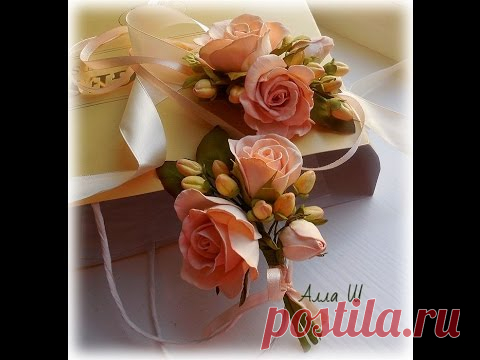 МК Бутоньерка для жениха и невесты. Как утолщать стебель розы . Часть 4