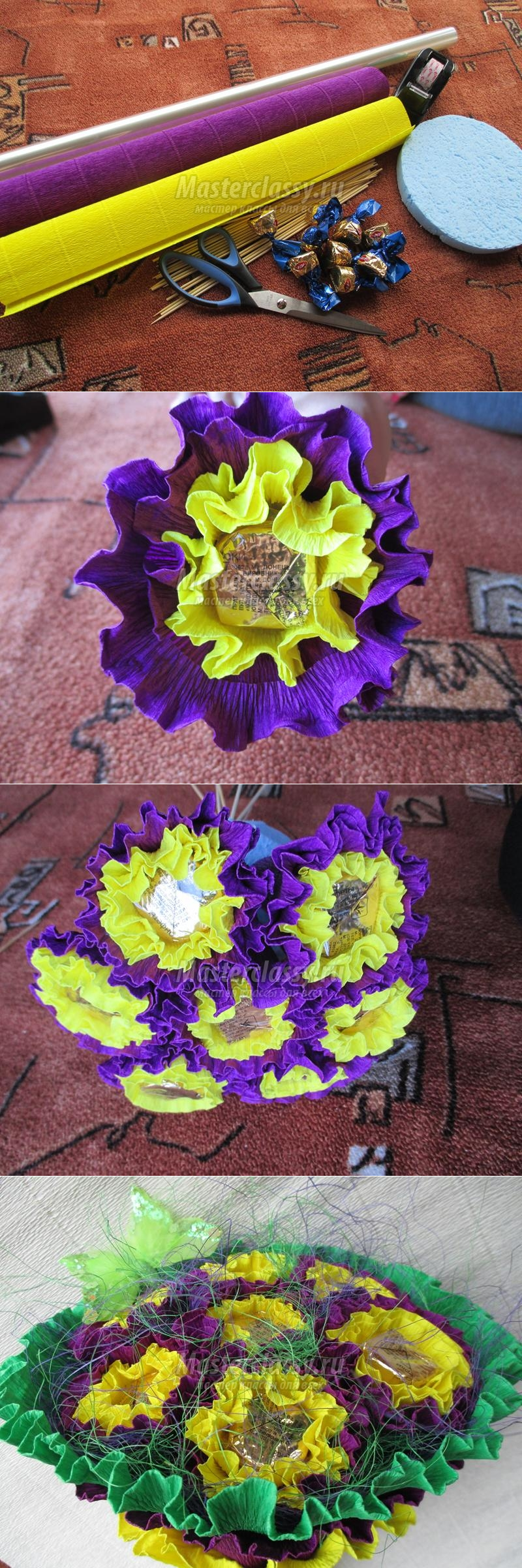 Букеты из конфет в подарок. Мастер-класс с пошаговыми фото