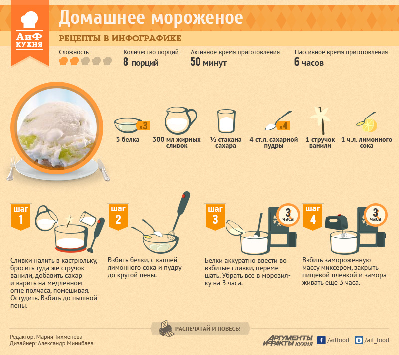 Сливочно-ванильное мороженое | Рецепты в инфографике | Кухня | Аргументы и Факты