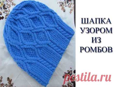 Шапка узором из ромбов и кос. Вяжем спицами. Делаем расчет.
