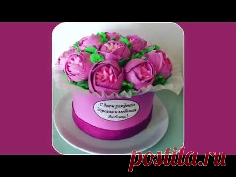 Торт Пионы в коробке / Tutorial cake Gift box with cream peony