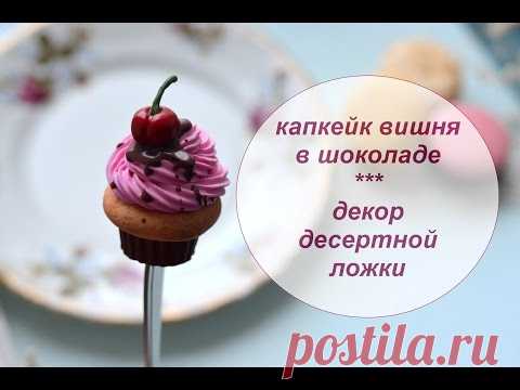 Полимерная глина ♥ Декор десертной ложки Капкейк вишня в шоколаде ♥ Polymer Clay