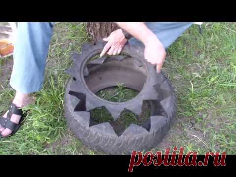 Клумба из колеса ножом за пять минут.