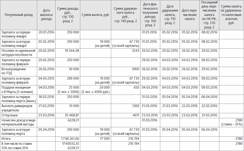 Заполнение 6-НДФЛ