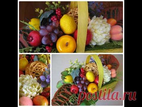 Корзинка с цветами и фруктами на день учителя. Осенняя композиция