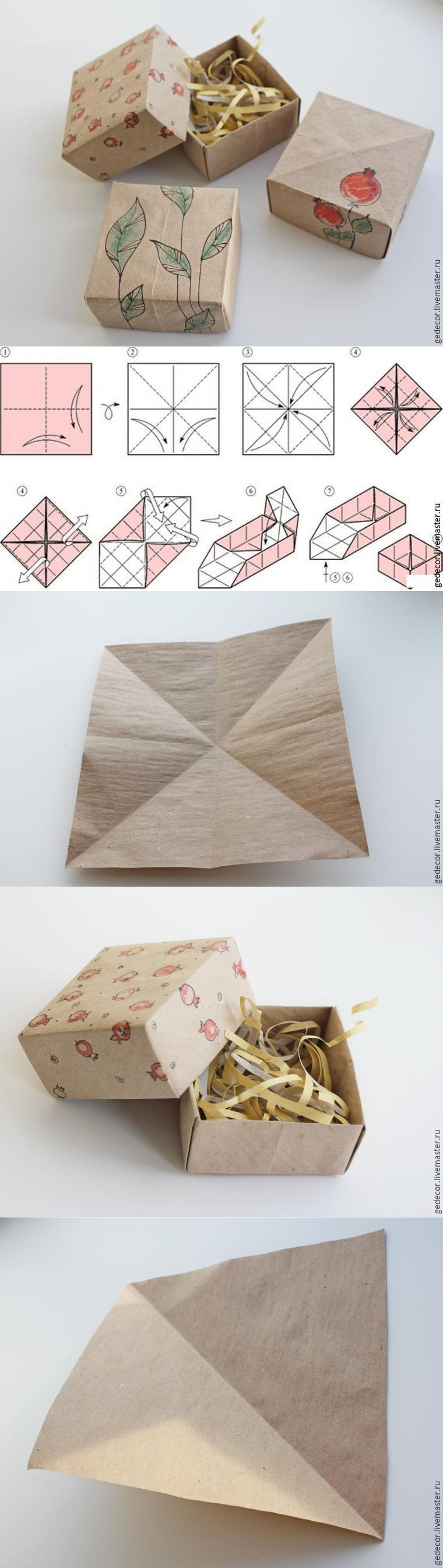 Как за 15 минут сделать коробочку из крафт-бумаги в технике оригами