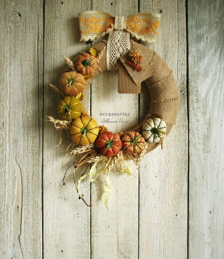 Осенний декор интерьера. Создаем венок с текстильными тыквами
