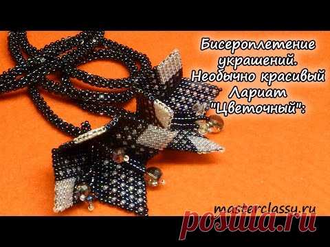 Бисероплетение украшений. Необычно красивый Лариат "Цветочный": подробный видео урок
