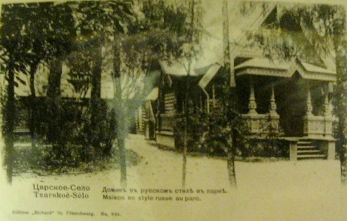 Русский городок - Жизнь Русского городка до революции Деревянный домик, построенный по рисунку И. Я. Билибина (не сохранился)