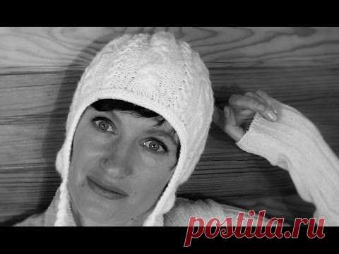 Вязаная шапка с ушками. Белая шапочка спицами с ушками. Вязаные шапки спицами