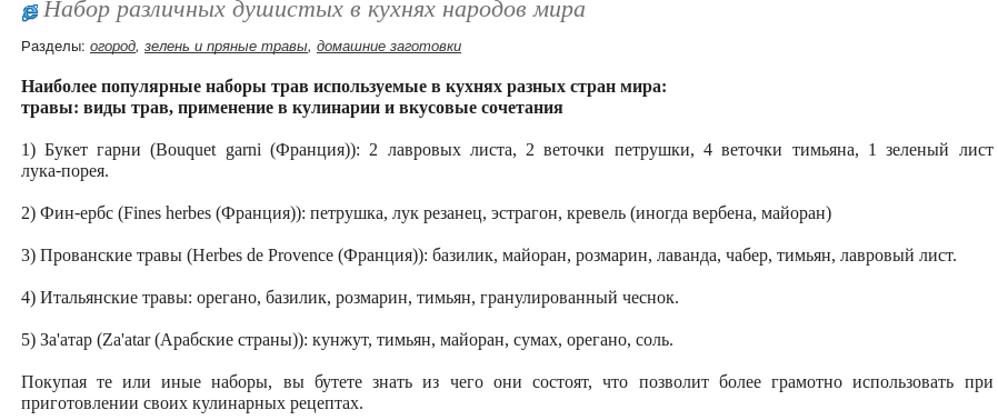Набор различных душистых в кухнях народов мира: Группа Собираем урожай: хвастики, рецепты, заготовки
