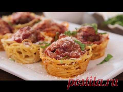 Она наполнила форму для кексов спагетти. В итоге получилось блюдо, достойное праздничного стола! |