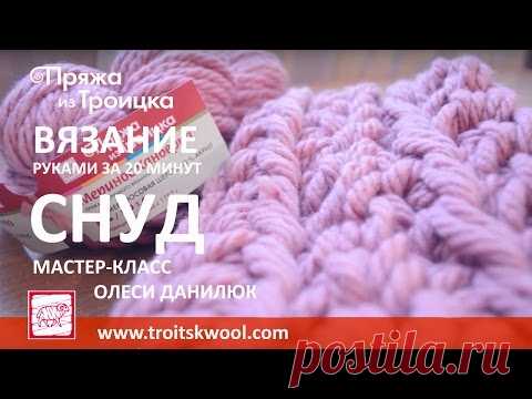 Вязание руками. Готовый снуд за 20 минут