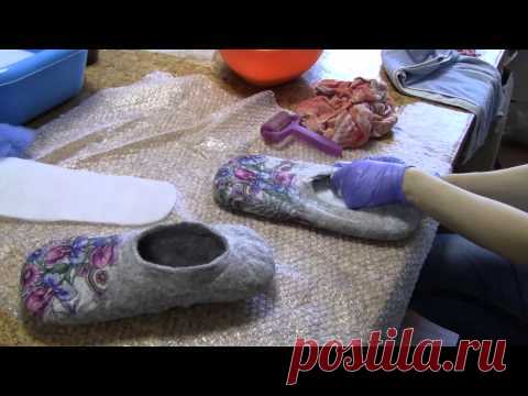 ✿Войлочные тапочки✿Как свалять тапочки - YouTube