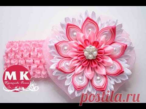 Мастер-класс Канзаши.Цветы Канзаши из лент.Повязка на голову/The bandage on the head. Kanzashi