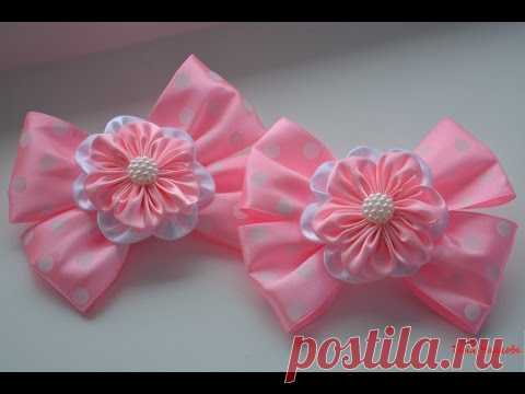 Бантики из лент с цветком канзаши
