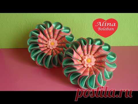 Зефирка из лент / D.I.Y. Сómo hacer una flor doble de cintas