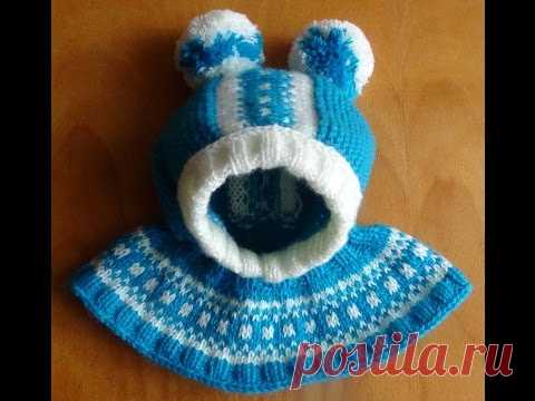 Шапочка-шлем с жаккардовым узором. Cap-helmet with jacquard knitting pattern - YouTube