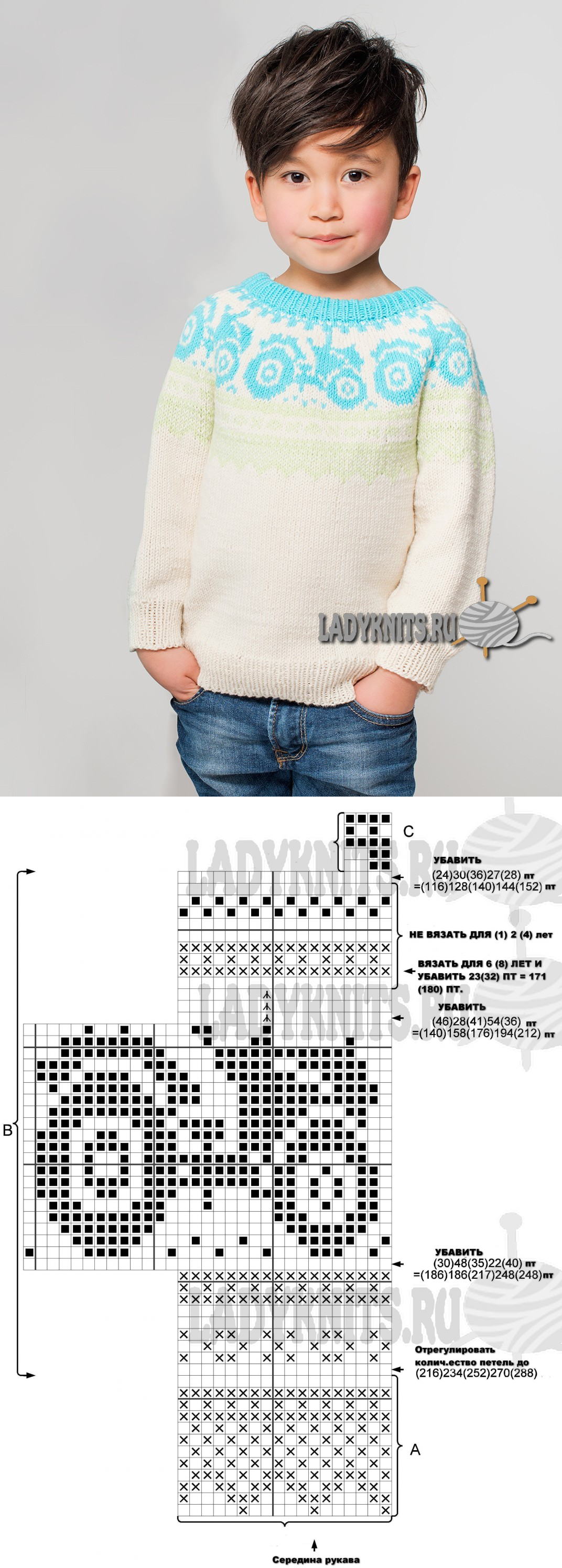 Вязаный спицами жаккардовый джемпер для мальчика от 1 года до 8 лет