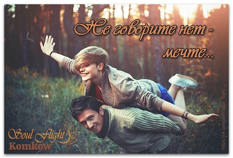 Не говорите НЕТ, когда тоска стучится Когда на сердце рана… пустота… Пусть даже время так неумолимо мчится Начните сказку с чистого листа… Не говорите НЕТ, когда в борьбе за чувства Вы потеряли сердце… навсегда… Когда мечтам и мыслям мало места, Не говорите НЕТ! Скажите жизни ДА! Скажите ДА, чтоб сердце вновь забилось! Чтоб каждой клеточкой почувствовать мечту… Чтоб счастье бесконечно длилось… Скажите ДА, чтобы зажечь звезду!